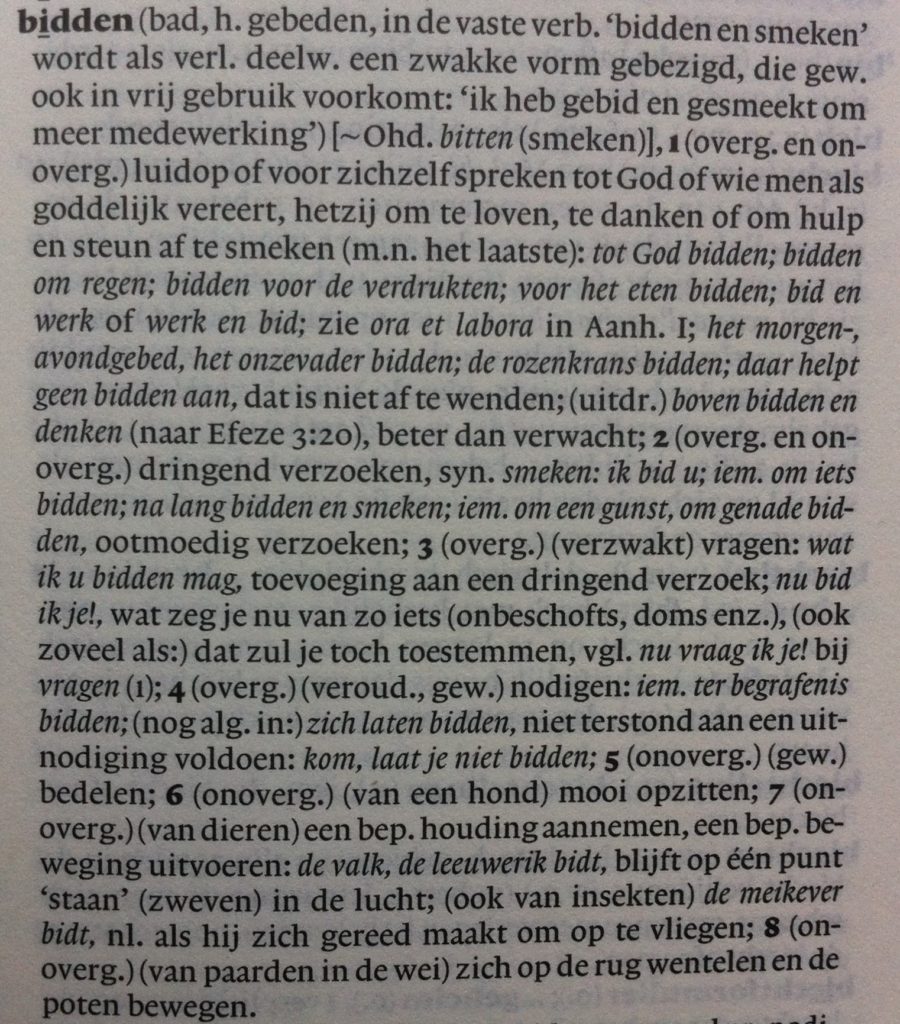 Vraag tien willekeurige mensen wat bidden is en ze zullen allemaal een ander antwoord geven. Dat komt omdat bidden voor de meeste mensen iets heel persoonlijks is: ze zoeken vanuit hun eigen persoonlijkheid contact met het allerhoogste: God. Zowel voor gelovige als niet gelovige mensen is dat iets wat je moeilijk onder woorden kunt brengen. Vandaar ook die verschillende antwoorden.